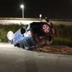 Por tal motivo salió del camino y termina volcado, el conductor salió ileso.