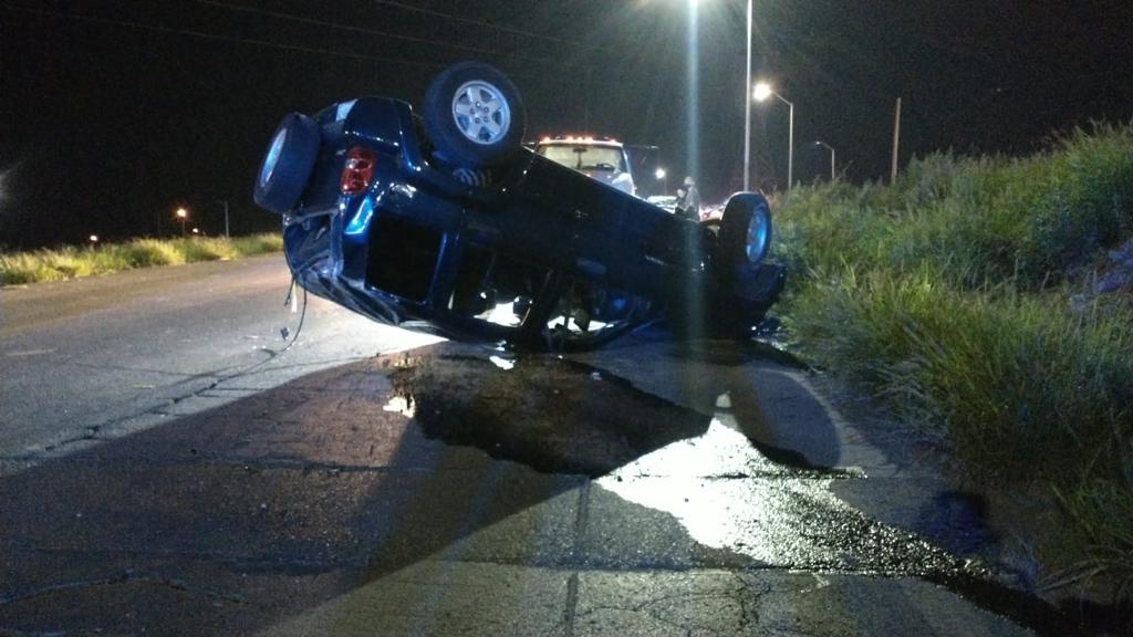 Un choque volcadura se presento en el Circuito Universitario en el norte de la ciudad, en donde se dieron cuantiosos daños materiales.