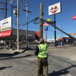 Vecinos comerciales de la avenida Vallarta denunciaron que un tráiler que circuló por el lugar jaló cables, lo cual terminó por derrumbar tres postes de luz.