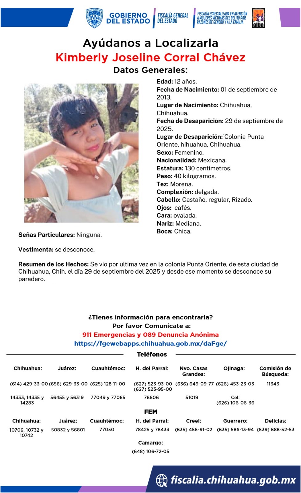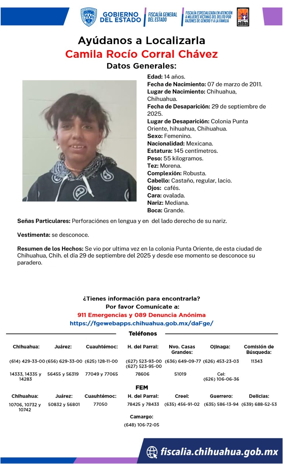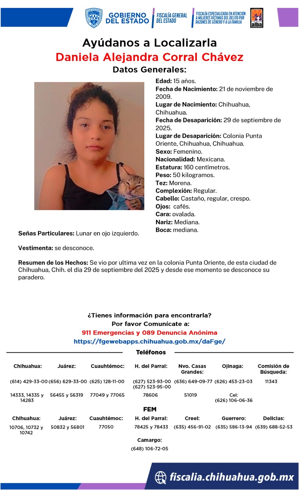 Fueron vistas por última vez el 29 de septiembre del 2025 en la colonia Punta Oriente, la FEM pone a disposición de la población la marcación 911 o el 089 para denuncia anónima a fin de hacer llegar cualquier información que ayude a dar con su paradero.