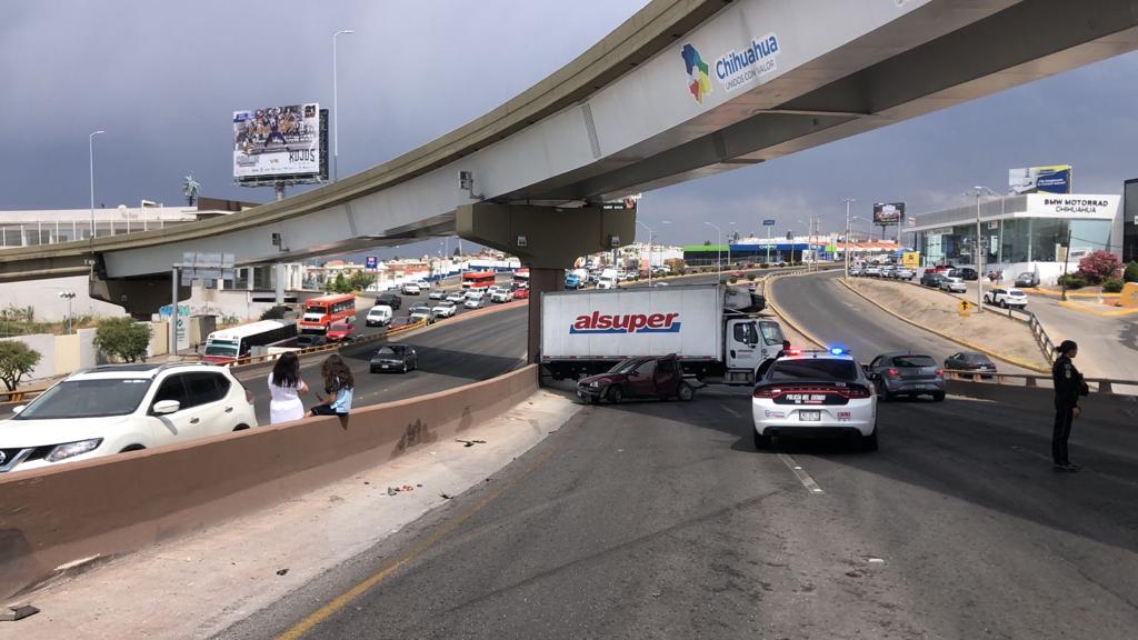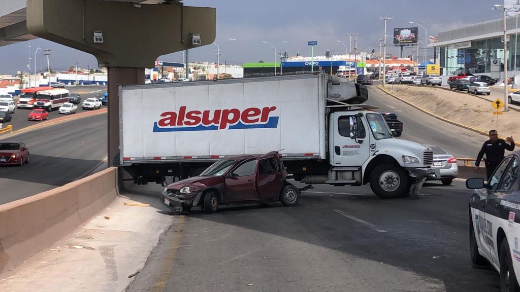 Estos choques fueron a consecuencia de derrapes por el pavimento mojado, en donde un camión tortón de Alsuper impacto a un carro chevy color guinda, dejando un lesionado en el periférico de la juventud y Cantera justo debajo de la Gaza.