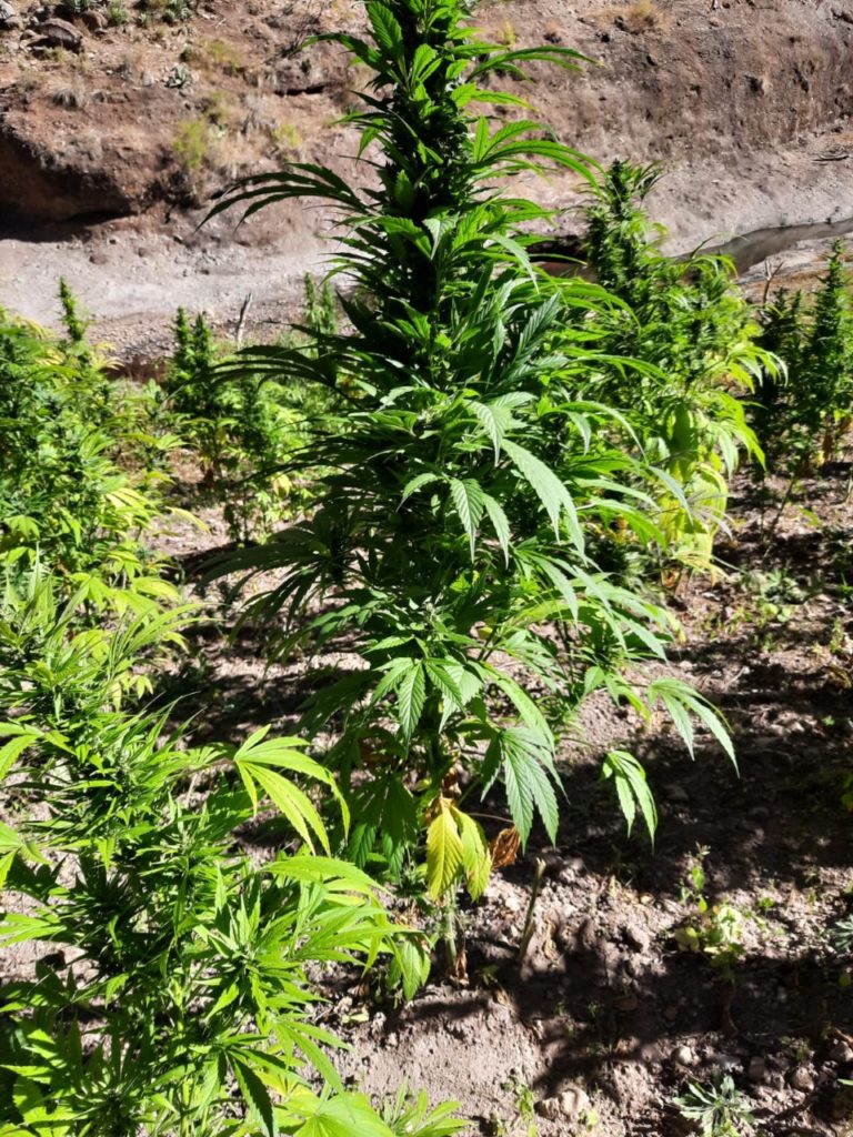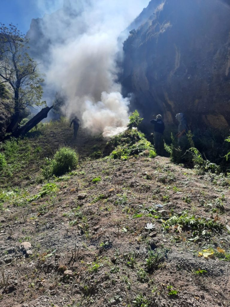 Elementos de la Agencia Estatal de Investigación de la Fiscalía de Distrito Zona Occidente procedieron a la destrucción de un sembradío de marihuana que fue localizado en las inmediaciones del Cerro Agujerado, en el municipio de Nonoava.