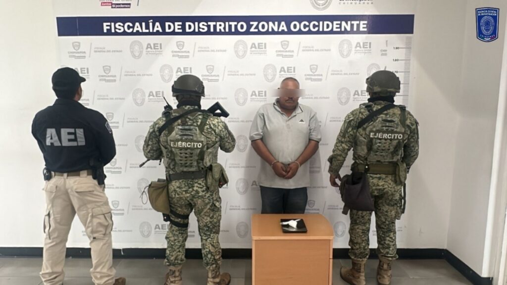 Elementos de la Agencia Estatal de Investigación, de la Guardia Nacional y de la Secretaria de la Defensa Nacional que realizan un operativo conjunto en el municipio de Cuauhtémoc, en las pasadas horas detuvieron en distintas intervenciones a tres masculinos por posesión de droga.