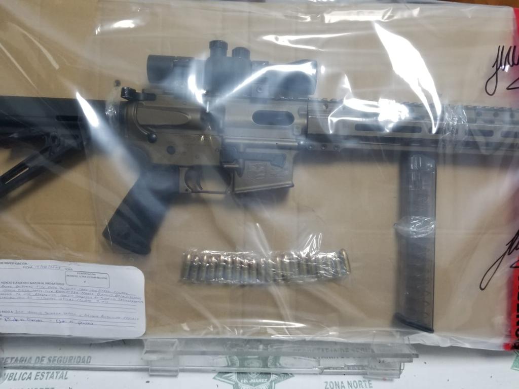 Elementos de la Secretaría de Seguridad Pública del Estado (SSPE) adscritos a la Zona Norte, detuvieron en Ciudad Juárez a una pareja que circulaba a bordo de una camioneta pick up, en la que transportaban dos armas de fuego, cartuchos de varios calibres y varias porciones de una sustancia transparente y granulosa con las características propias de la droga “cristal”.