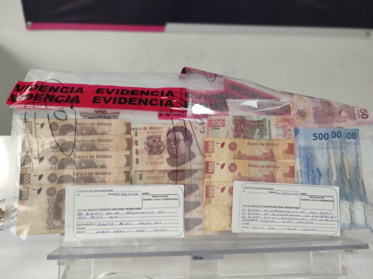 Tras la primera detención se acercó con los oficiales del K-9, Agustín A. A. de 35 años de edad, originario de Oaxaca, quien ofreció la cantidad de 15 mil pesos en moneda nacional para que dejaran libres a los 3 presuntos “polleros”, motivo por el que también fue detenido.