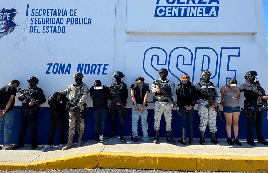 Durante la intervención, los agentes aseguraron a cuatro hombres y dos mujeres, identificados como Jorge G. R. alias “El Lobo”, de 38 años; Luis Fernando V. M. alias “El Ferias”, de 16 años; Sergio Alberto O. C. alias “El Pollo”, de 22 años; David P. A. alias “El Güero”, de 16 años; Jocelyn L. M., de 17 años; y Ana F. T., de 23 años.