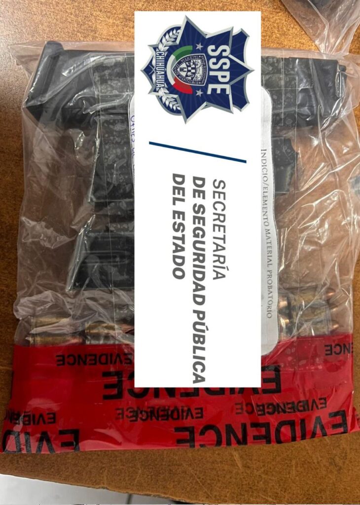 Además, se aseguraron tres cargadores adicionales, uno calibre .40 con 16 cartuchos, uno calibre 9 mm con 10 cartuchos, y otro calibre 9 mm con 7 cartuchos; un cargador desabastecido, y 57 cartuchos útiles calibre 7.62×39 mm.