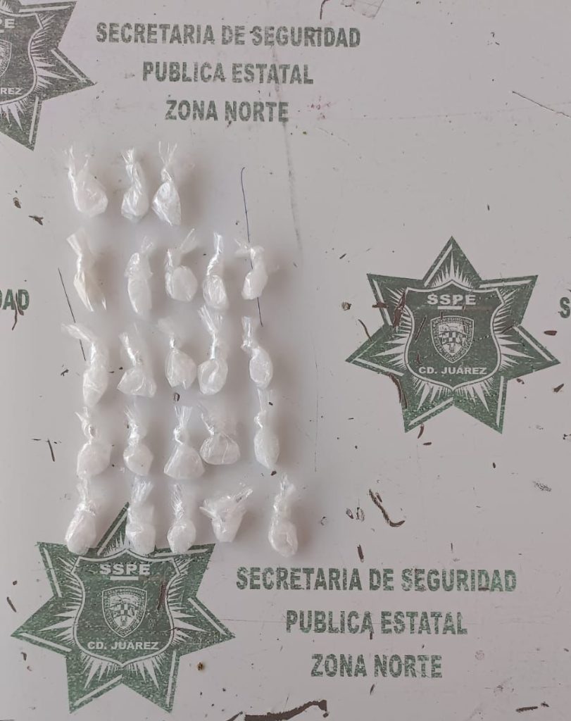 Los agentes de la Subsecretaría de Estado Mayor realizaban actividades de vigilancia en la colonia mencionada cuando marcaron el alto al sujeto, a quien tras una inspección, le localizaron 23 envoltorios de una sustancia transparente y granulada similar a la droga “cristal”.