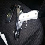 Durante la revisión les encontraron una pistola escuadra marca Smith y Wesson calibre .9mm con su respectivo cargador con cinco cartuchos útiles, además de bolsas trasparentes que contenían un polvo blanco y granulado con propiedades de metanfetamina cristal, con un peso de 4 gramos.