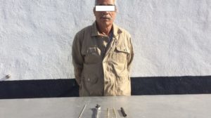 El suceso se registró en el cruce de las calles Francisco I. Madero y Nicolás Hermosillo, lugar donde los agentes de las Fuerzas Estatales le aseguraron al acusado un tubo metálico, un electrodo, una matraca y 10 cartuchos útiles .22