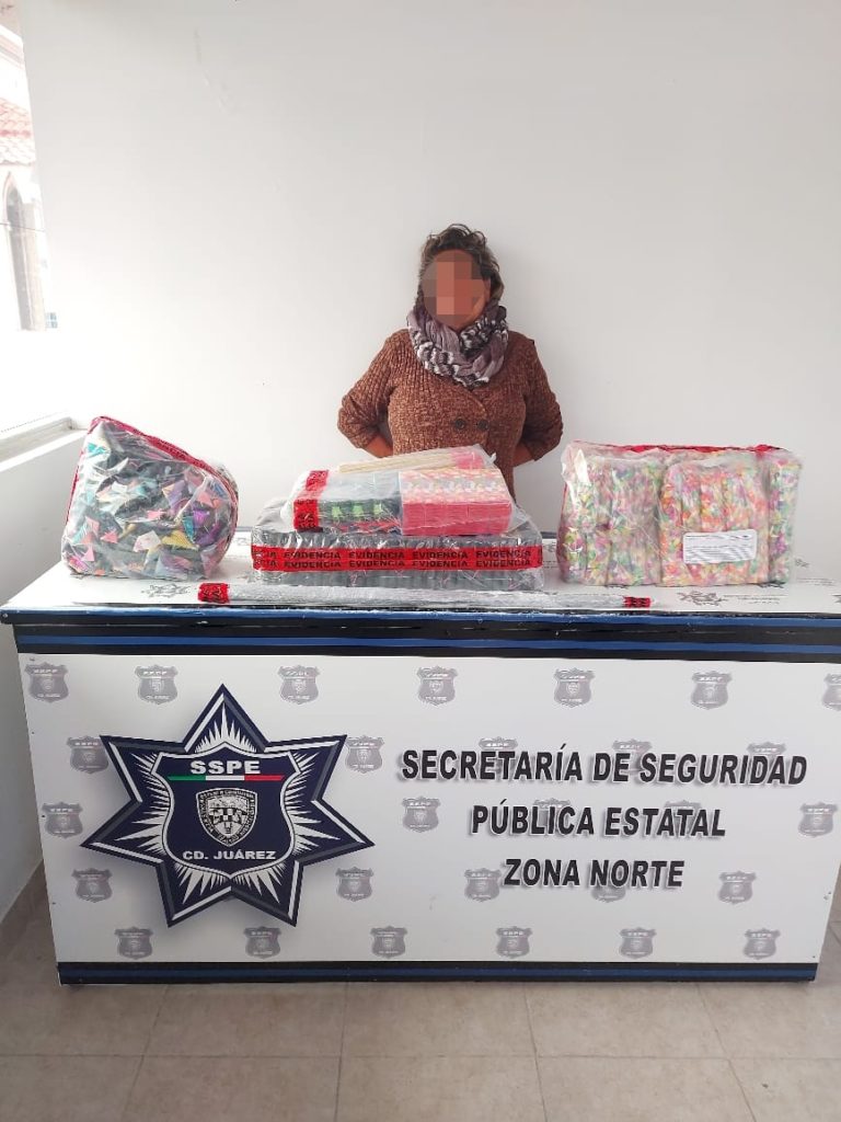 Fue en el cruce de las calles Rafael Velarde y La Paz de la colonia Centro en Ciudad Juárez que los elementos de la Secretaría de Seguridad Pública del Estado (SSPE) sorprendieron a una mujer y un hombre con la pirotecnia.