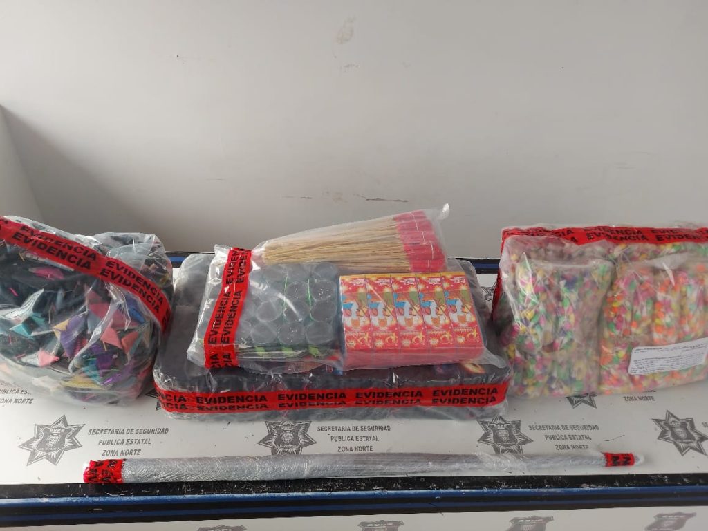 En total se aseguraron 32.09 kilogramos de pirotecnia y $2000.00 pesos en efectivo, que ofrecieron a los elementos de seguridad para evitar su detención.