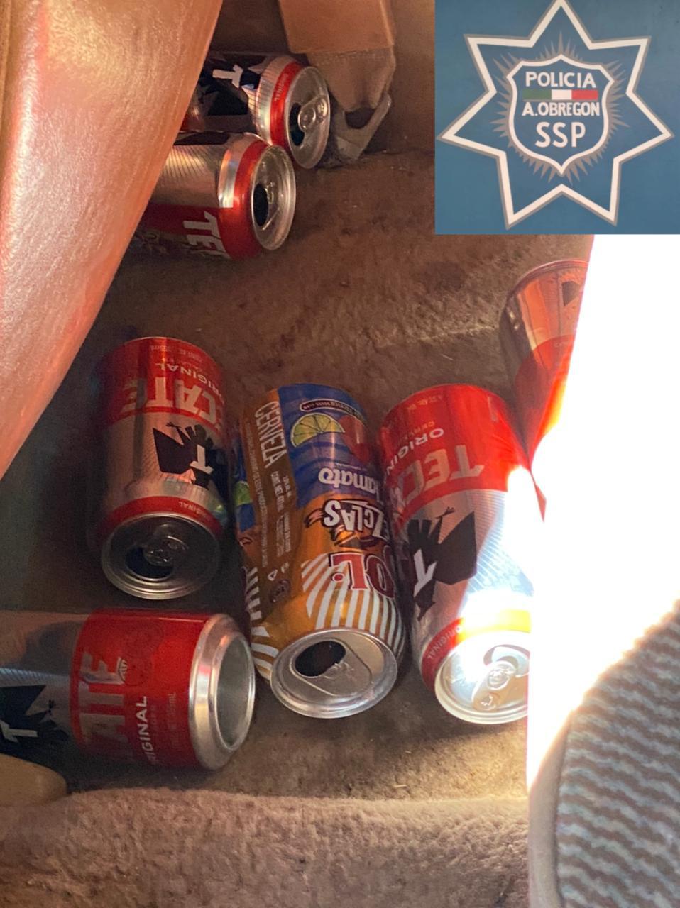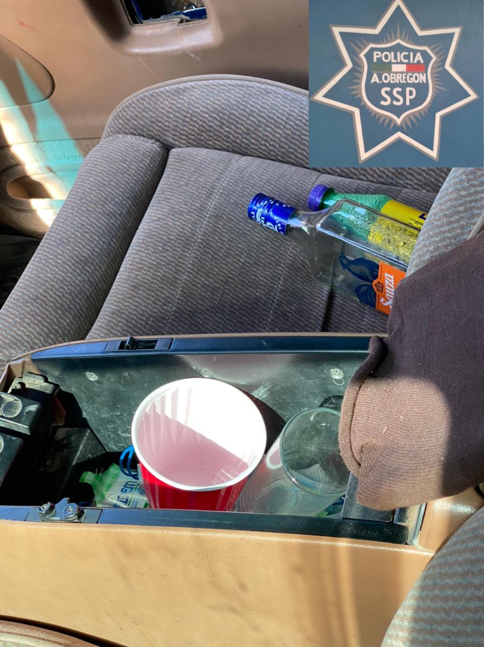 Se aseguró el vehículo por estar estacionado en sentido contrario, así como por estar bajo reporte. En el interior había envases de bebidas embriagantes.