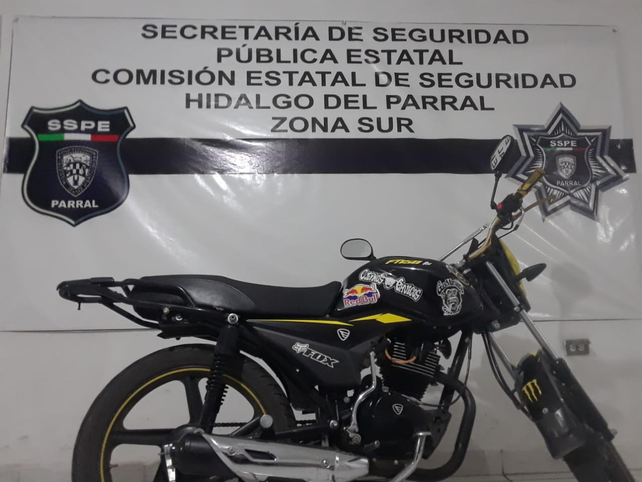 Personal de la Secretaría de Seguridad Pública del Estado (SSPE) detuvo en Hidalgo del Parral, a un joven menor de edad que tripulaba una motocicleta y traía en su posesión ocho paquetes de droga.