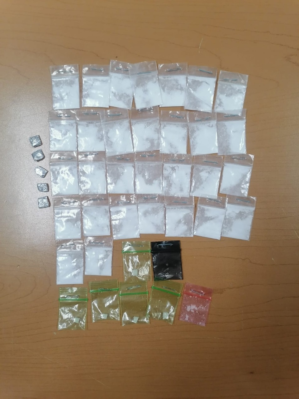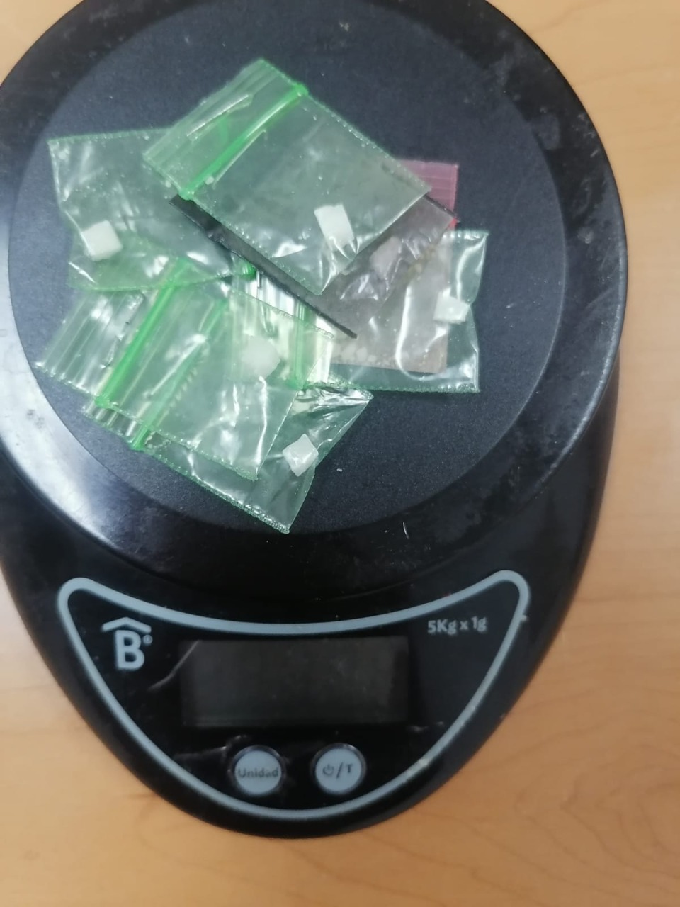 Además de siete bolsas de colores, las cuáles contenían en su interior una sustancia en piedra de color blanco con las características de la droga denominada cocaína y cinco envoltorios de papel aluminio con una substancia gomosa de color negro con las características propias de la droga denominada heroína.
