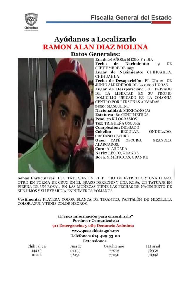 Los cuerpos encontrados semienterrados en “La Sabana” o “El Presón”, en Aldama, fueron identificados como Ramón Iván Díaz Molina y Fernando Aguirre Jáquez, de 29 y 22 años de edad, respectivamente.
