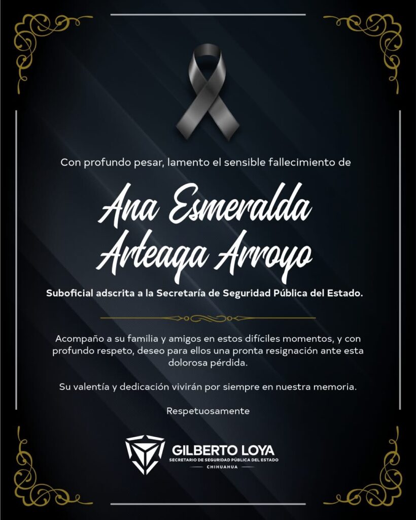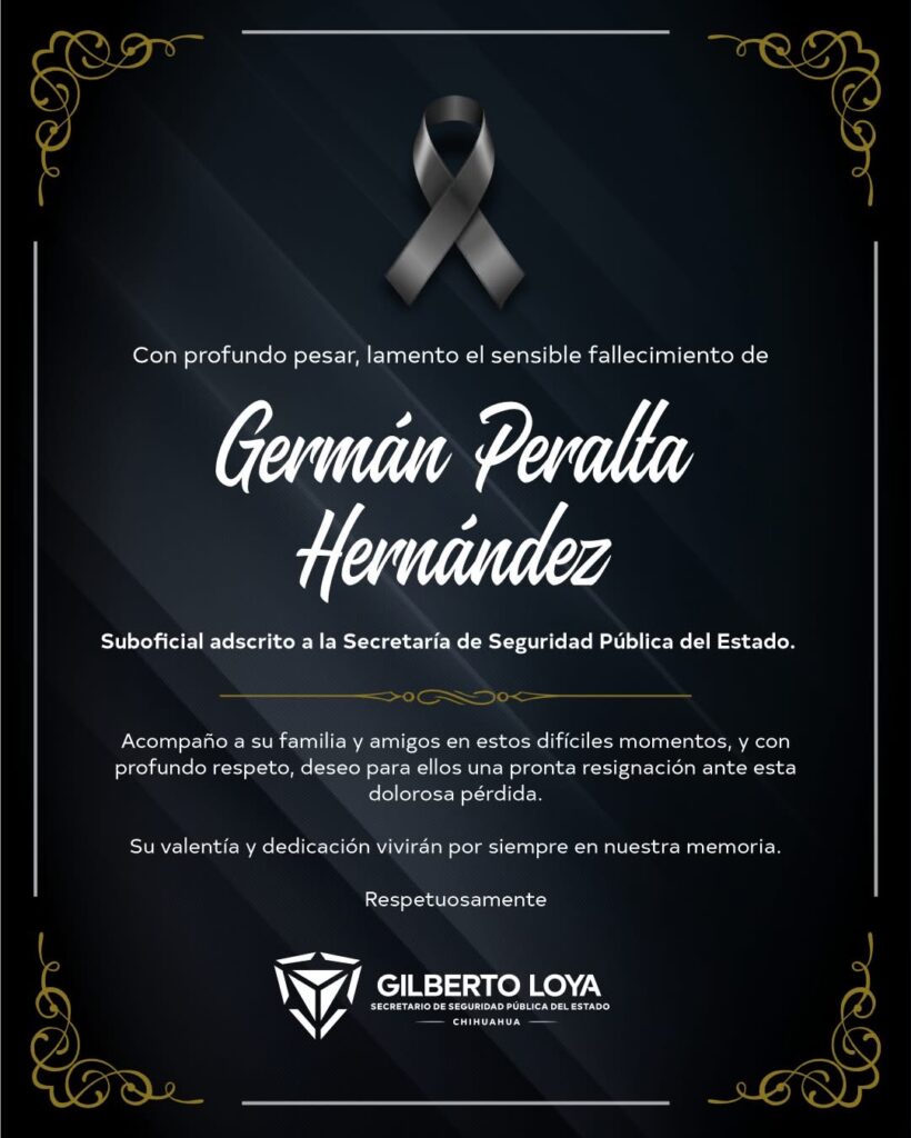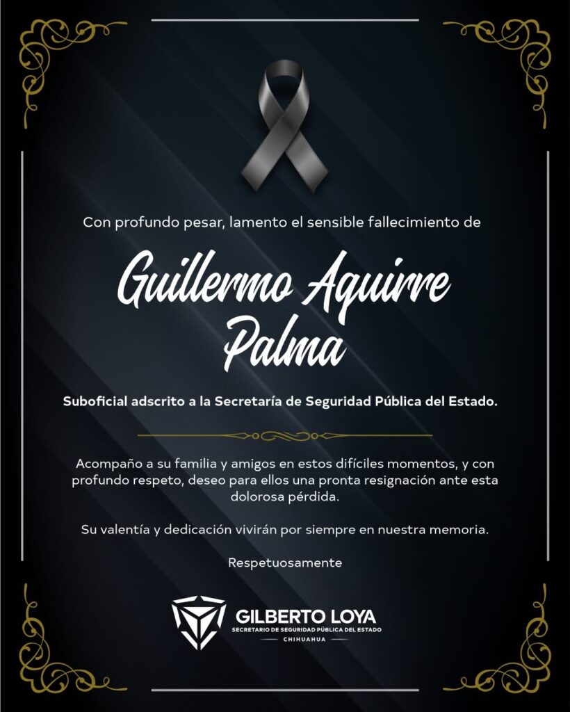 El secretario de Seguridad Pública Estatal, Gilberto Loya Chávez publicó las esquelas de los tres elementos que este martes perdieron la vida durante una agresión de civiles armados.