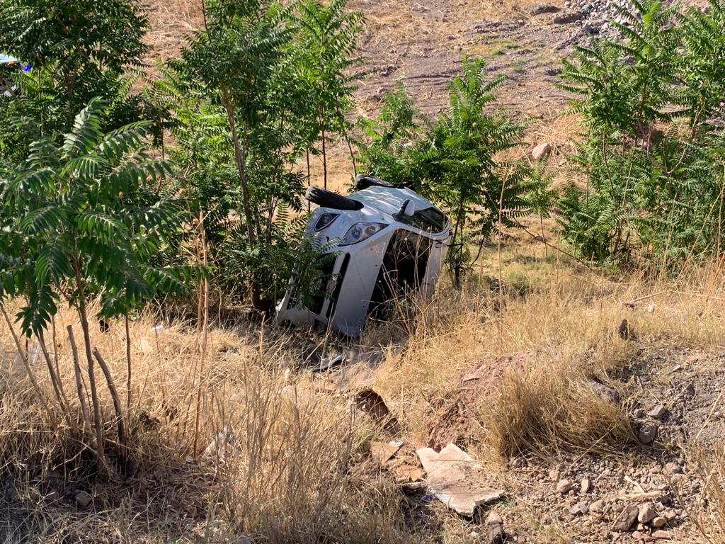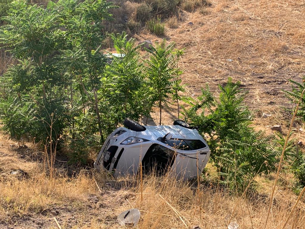 El vehículo termina volcado, se logro detener por parte de dos árboles en el lugar, por fortuna la conductora presenta heridas leves.