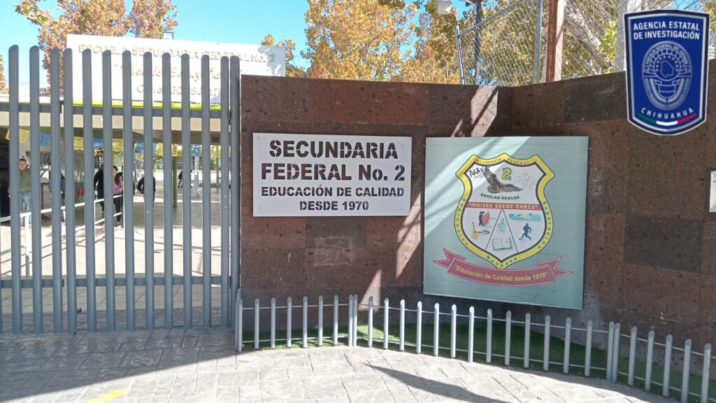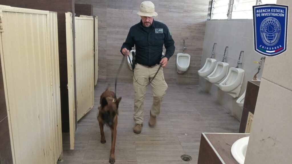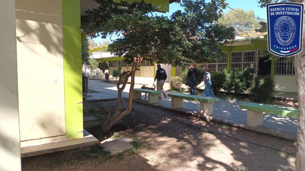 En continuidad con la jornada de «Intervención para la prevención y protección de la comunidad escolar», elementos de la Agencia Estatal de Investigación adscritos al Grupo de Orientación Escolar Chihuahuense (GOECHI), de la Fiscalía de Distrito Zona Centro, realizó una inspección de áreas de uso común de la Escuela Secundaria Federal número 2 «Moisés Sáenz Garza».