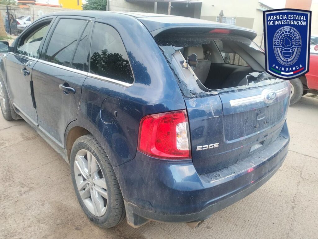 Uno de los vehículos dañados es una camioneta Ford EDGE Limited, modelo 2011, de color azul y el otro es un Matiz, modelo 2002 de color blanco.