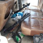 Elementos de la Agencia Estatal de Investigación, aseguraron en la comunidad de Yepachi un vehículo pick up, abandonado a un lado de la carretera en el cual se encontraron 6 armas de fuego, parque para armas de diferentes calibres y equipo táctico.