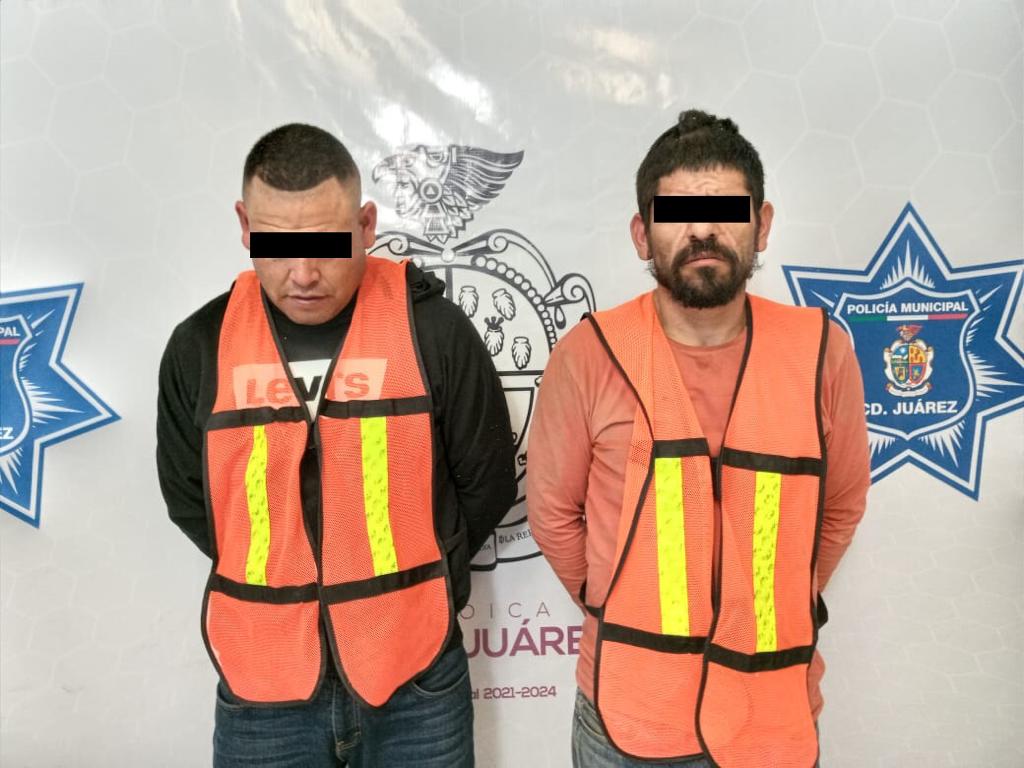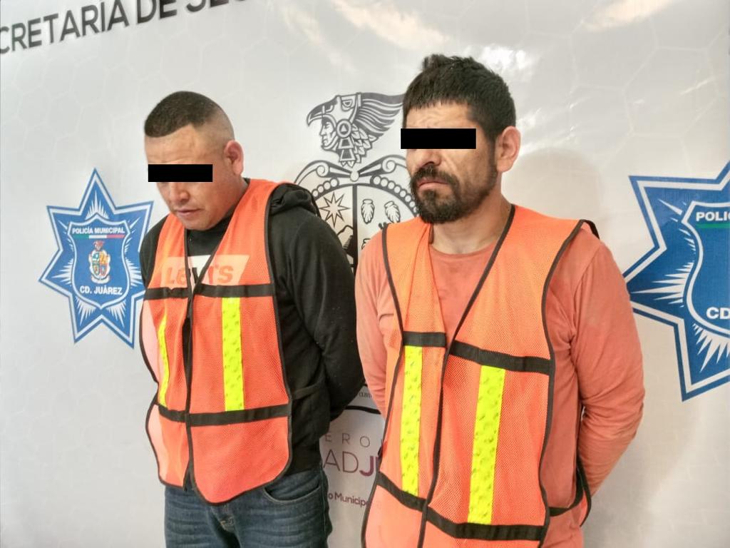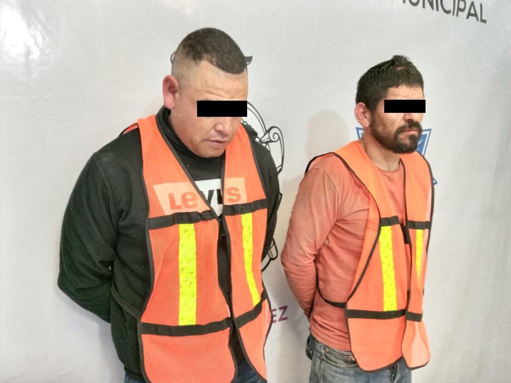 Elementos de la Secretaría de Seguridad Pública Municipal arrestaron a Abel Sabino C. C. y Ernesto R. G., por su presunta responsabilidad en la comisión de delitos contra la salud y posesión de un vehículo con reporte de robo.