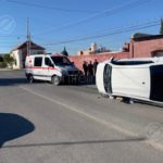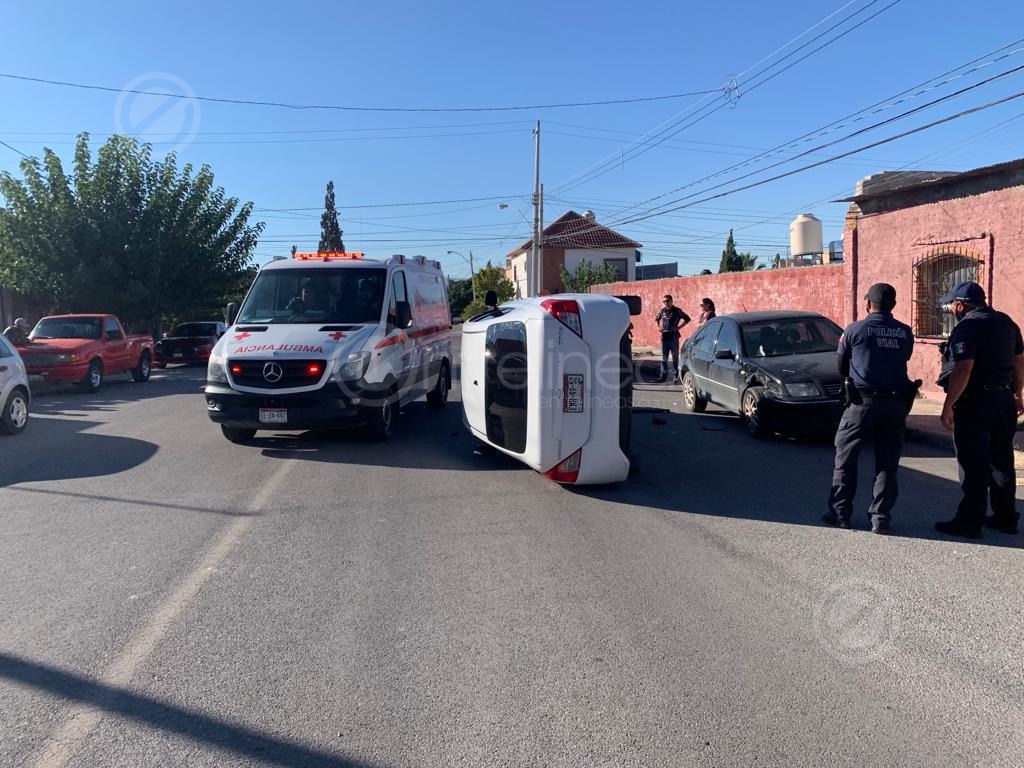 Una menor de edad que conducía un vehículo en calles de la colonia Dale, chocó contra un automóvil estacionado y volcó.