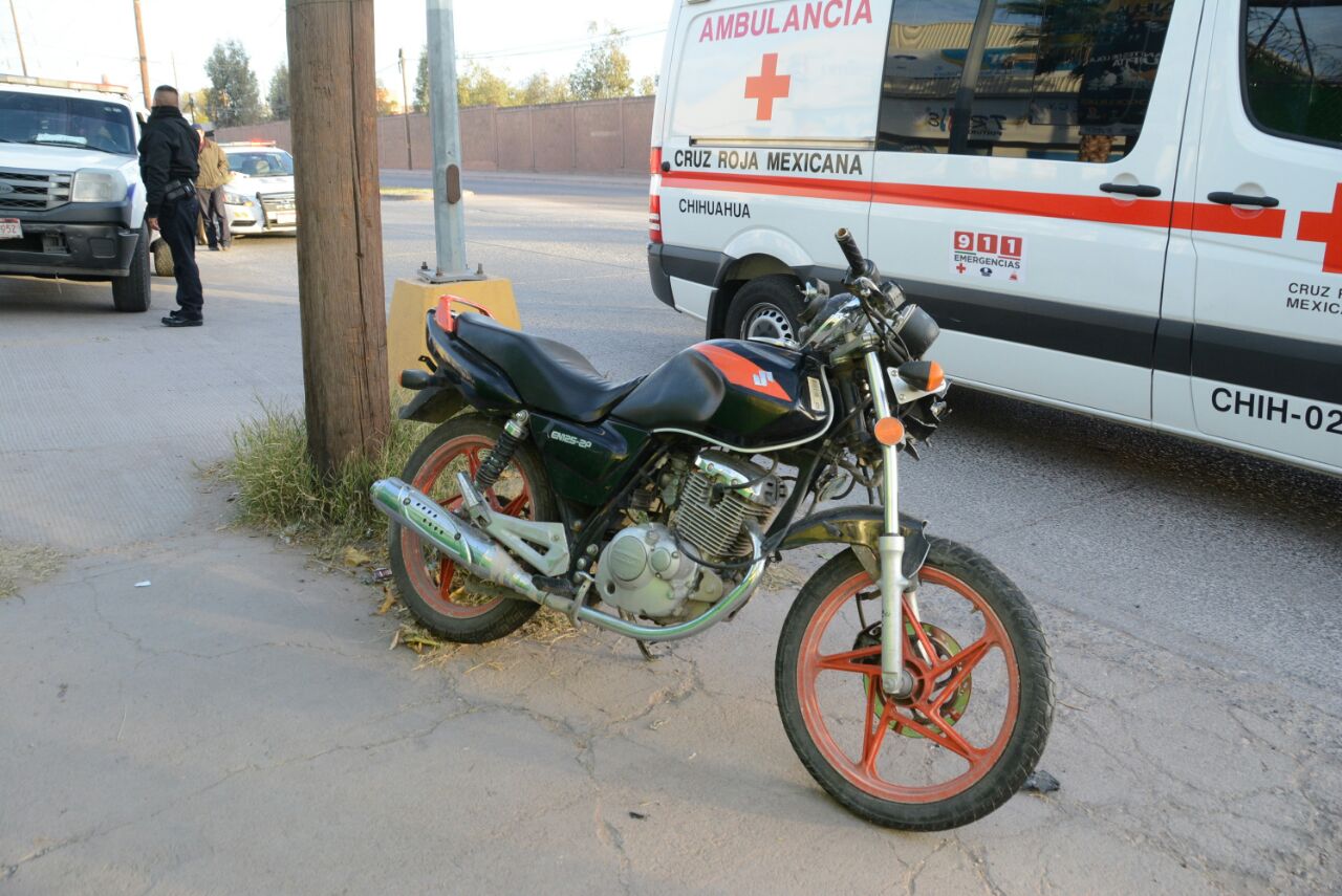 El accidente ocurrió entre las calles Juan Escutia y Río Aros, donde un joven a bordo de una motocicleta Susuki sin placas y se impactó contra una camioneta pick up Ford Lobo, con placas EC 55208.