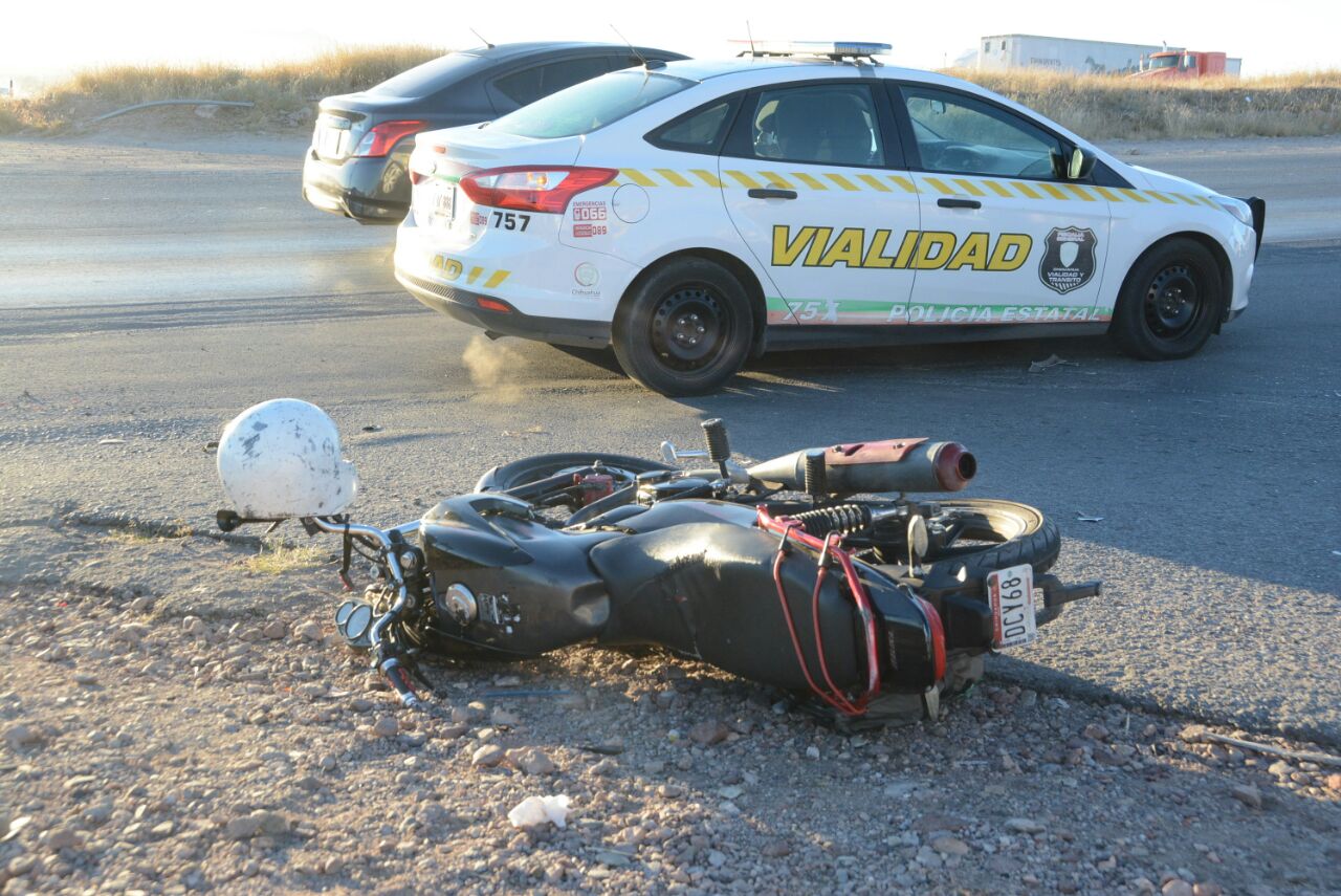 Un motociclista resultó con lesiones de consideración, luego de chocar contra un vehículo justo en la entrada al fraccionamiento Praderas del León, en la salida a Aldama.