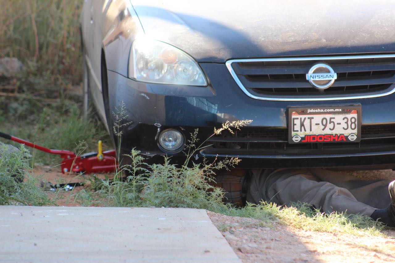 Al parecer, el gato hidráulico con el que se encontraba elevado el automóvil Altima color negro con placas de circulación EKT 9538 para su revisión presentó una falla en su mecanismo, por lo que el vehículo terminó cayendo encima de la persona.