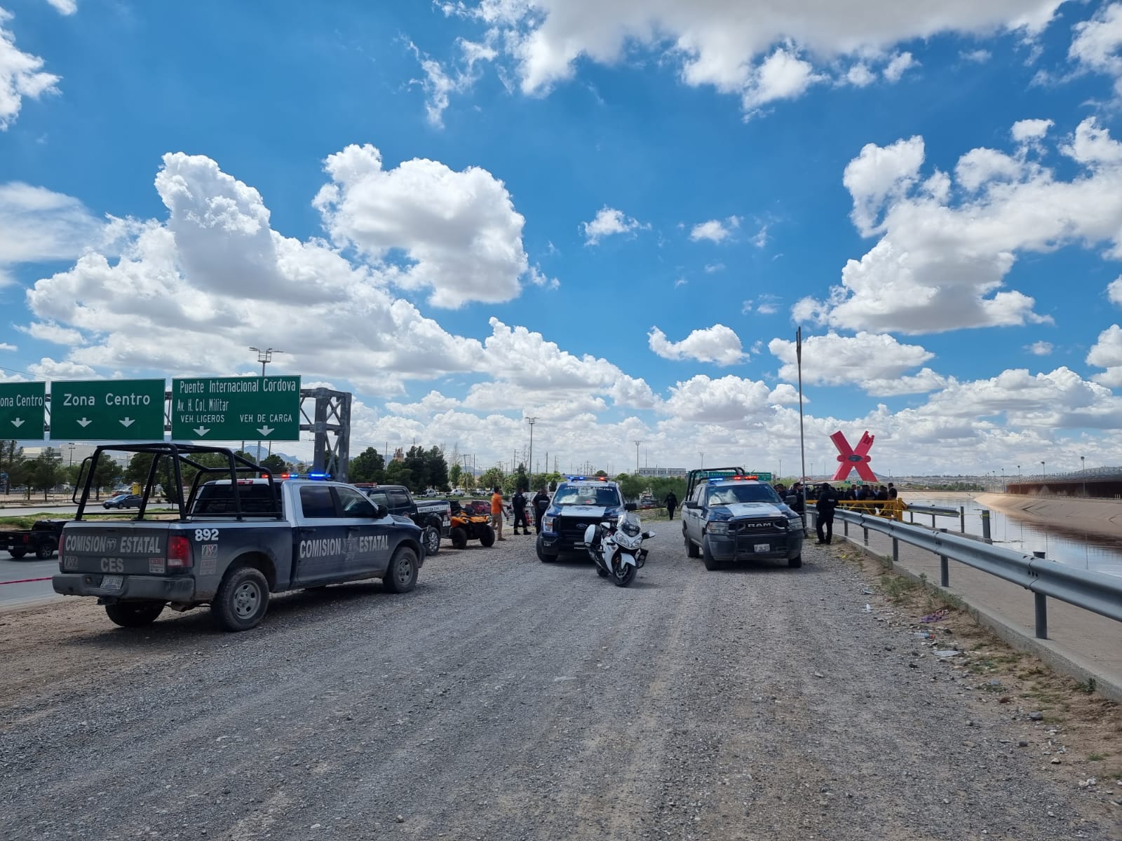 A través de radio operador se alertó a las corporaciones que, en las cámaras de vigilancia instaladas en el bordo de la frontera con Estados Unidos, se observaban personas siendo arrastradas por la corriente de agua, por lo que de inmediato se estableció un operativo coordinado entre personal de los 3 órdenes de gobierno, así como de la Border Patrol.