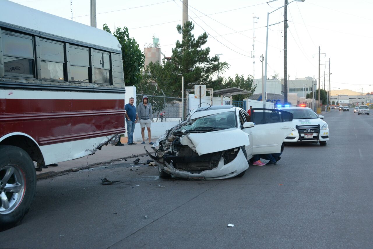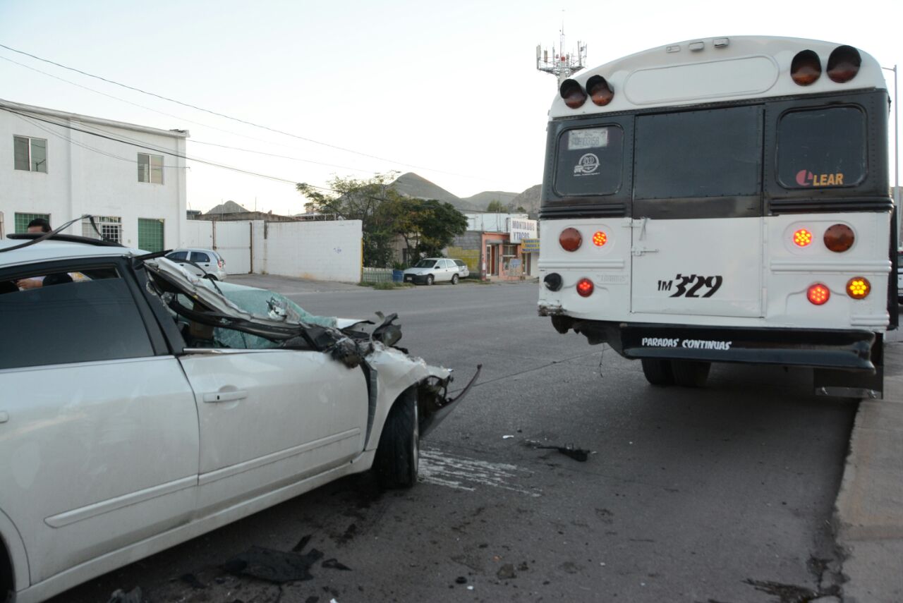 El conductor de un Nissan Altima que circulaba sobre la avenida Juan Escutia, no alcanzó a frenar y chocó contra la parte trasera de un camión de maquila.