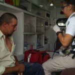 Fue en el cruce de las calles 16 y Samaniego en donde ocurrió el accidente, hasta donde se trasladaron paramédicos de URGE para atender al conductor herido.