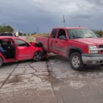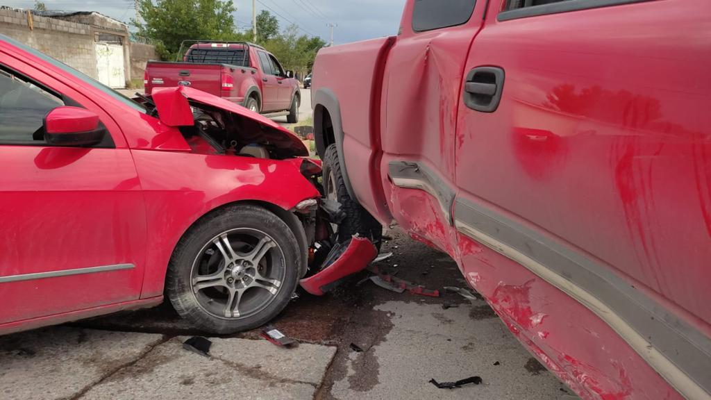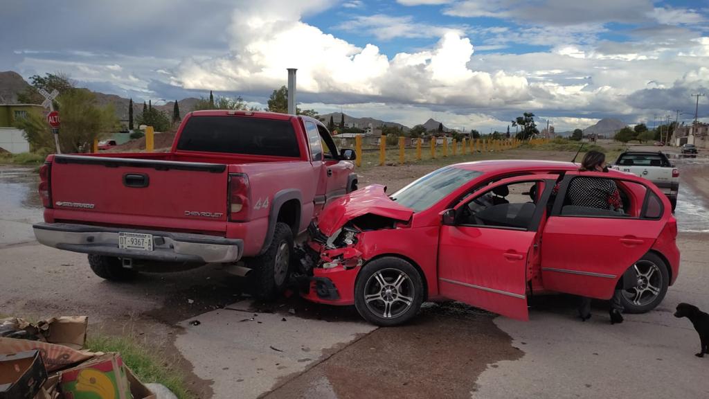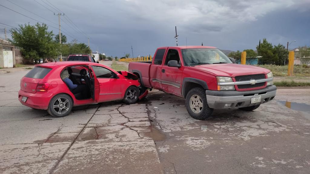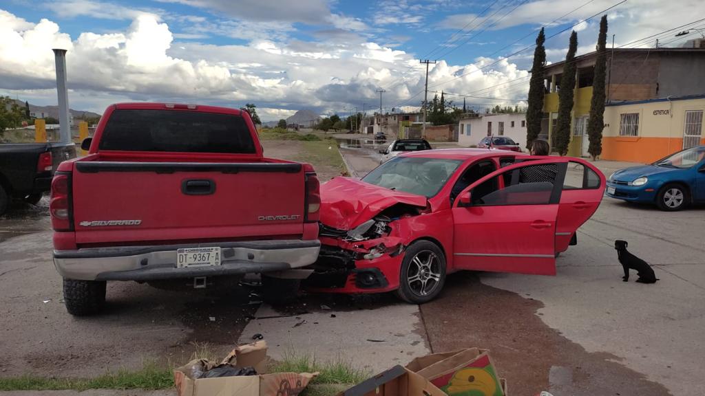 Un choque se registro esta tarde en calles de la colonia revolución al norte de la cuudad en donde un vehiculo modelo Golf omitió un alto y se impactó contra una camioneta Silverado.