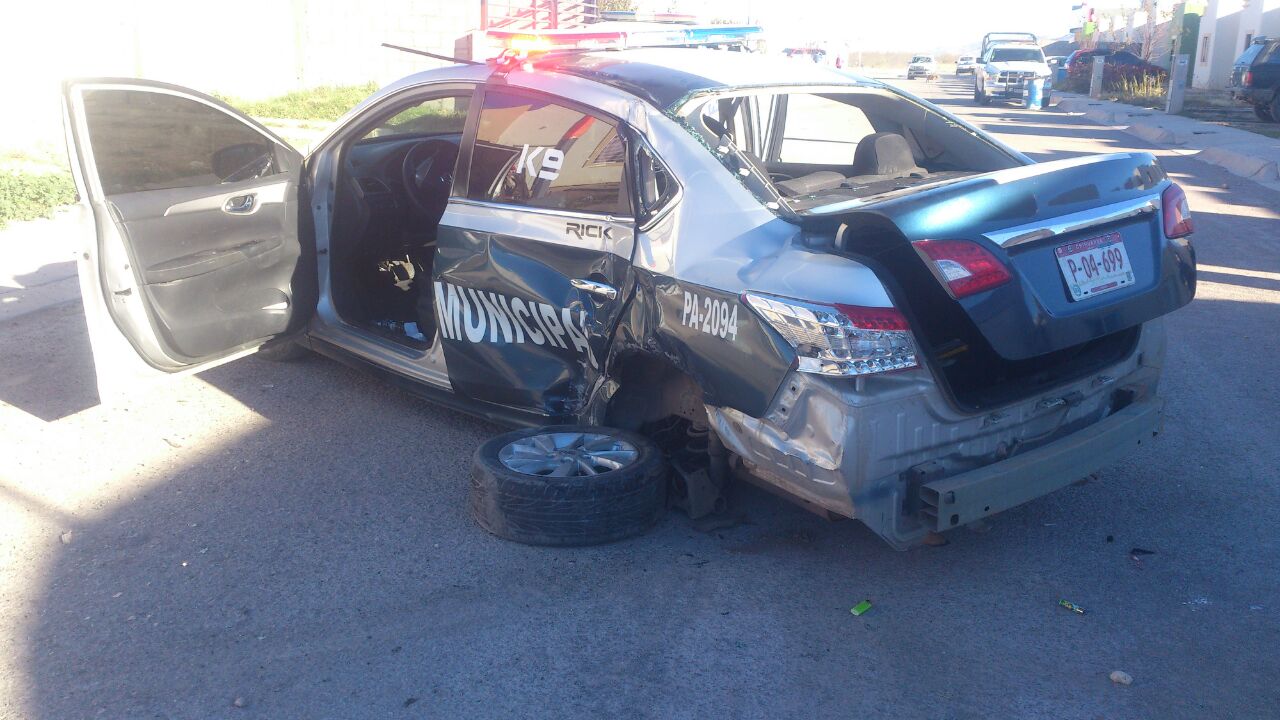 Un par de agentes de la Dirección de Seguridad Pública Municipal resultaron lesionados, luego de protagonizar un choque en la colonia Punta Oriente, en el cual el guiador de la patrulla de la DSPM omitió realizar el alto correspondiente.