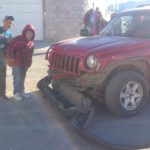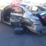 Debido a ello, el guiador de una camioneta Jeep Liberty con matrículas EME-2955, chocó contra la patrulla y la proyectó hacia un poste de luz mercurial.
