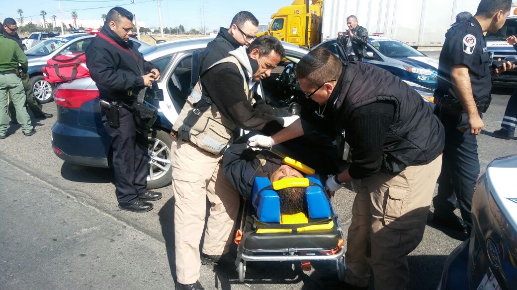 El accidente ocurrió en el cruce de las avenidas Tecnoloógico y Guillermo Prieto Luján, hasta donde se trasladaron paramédicos de URGE y agentes de la Dirección de Vialidad.