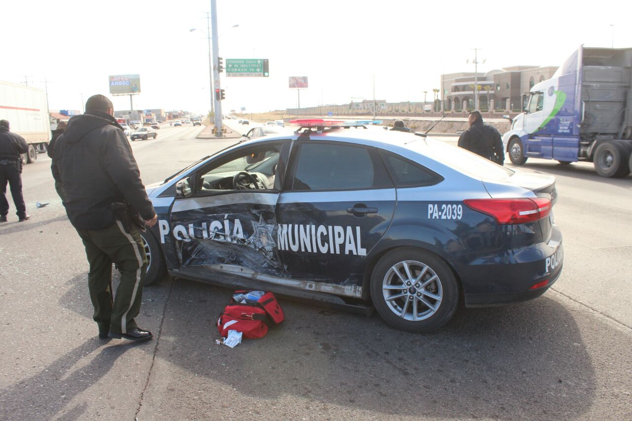 Tanto los policías municipales como dos mujeres que viajaban en el Tiida resultaron lesionados, por lo que tuvieron que ser trasladados a un hospital.