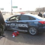 Los policías circulaban en un Ford Focus de modelo reciente y acondicionado como patrulla de la Dirección de Seguridad Pública Municipal, cuando al omitir el alto fueron impactados por un Nissan Tiida con matrículas EKC-9674.