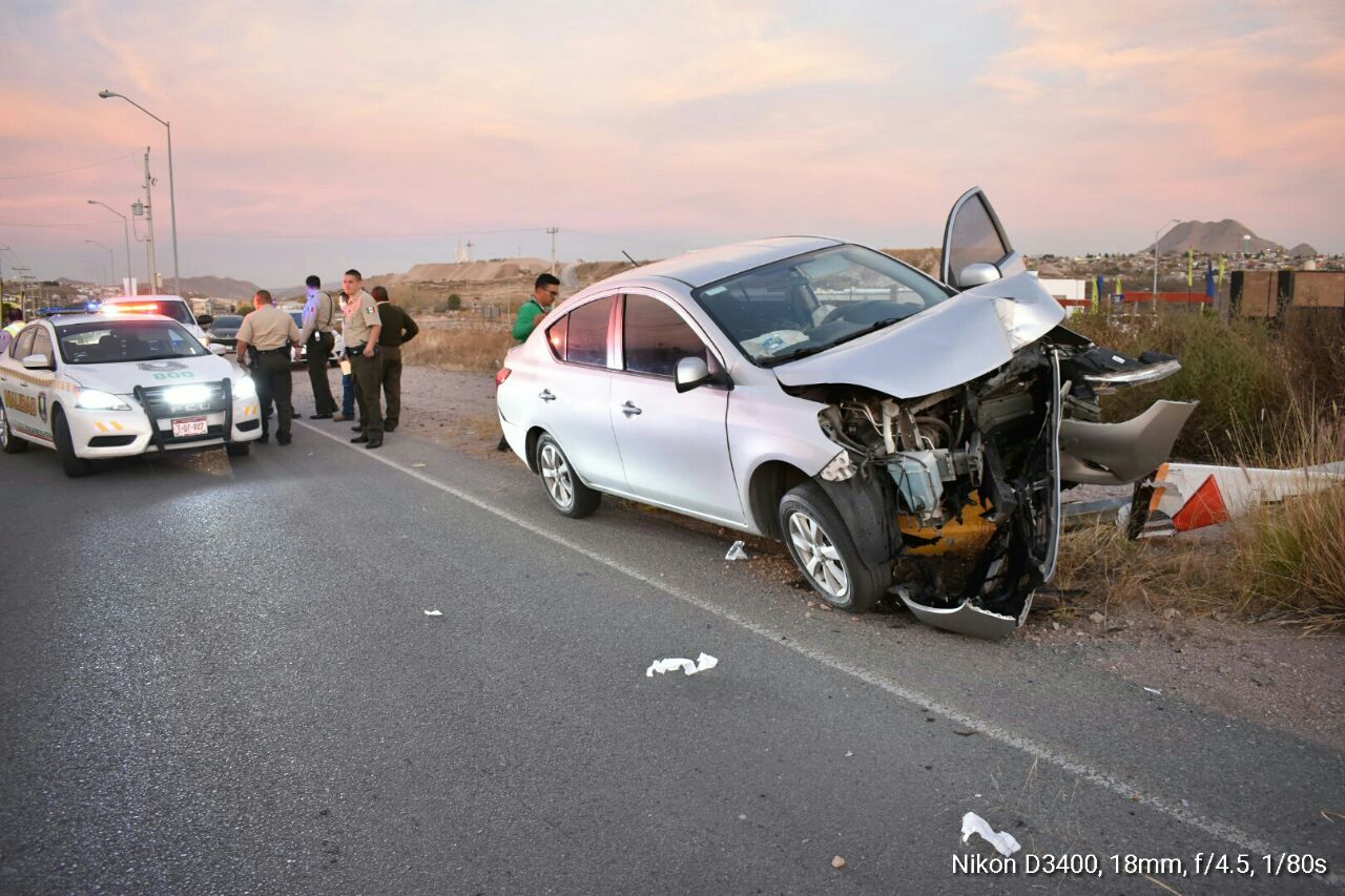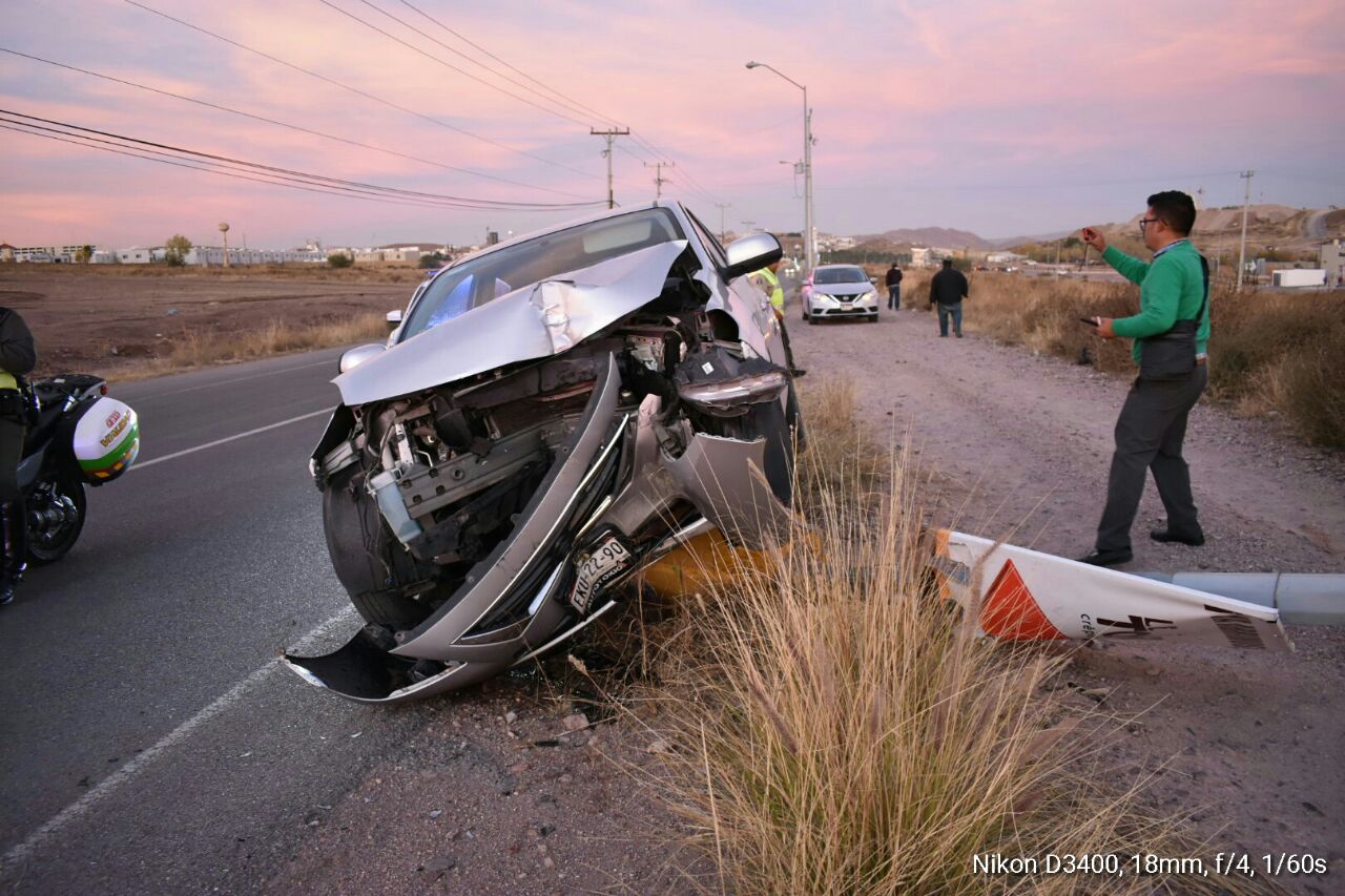Por circular a exceso de velocidad, una automovilista terminó impactándose contra un poste de alumbrado público ubicado sobre la prolongación Teófilo Borunda y calle Sendas.