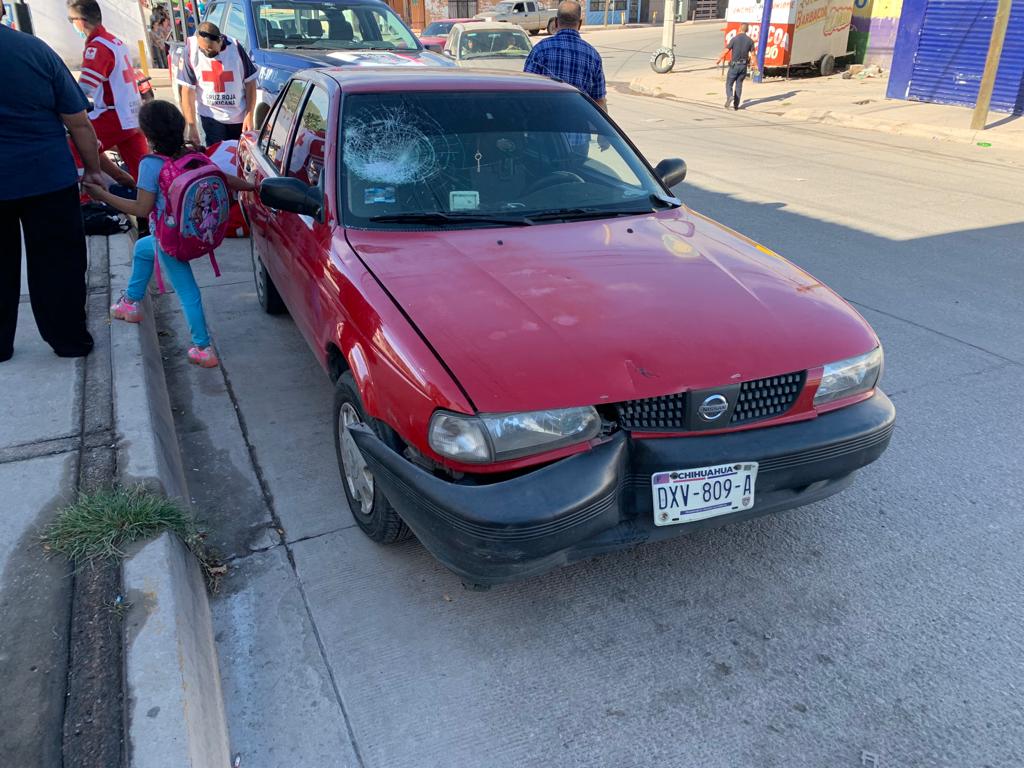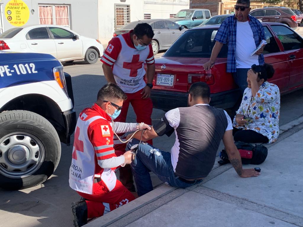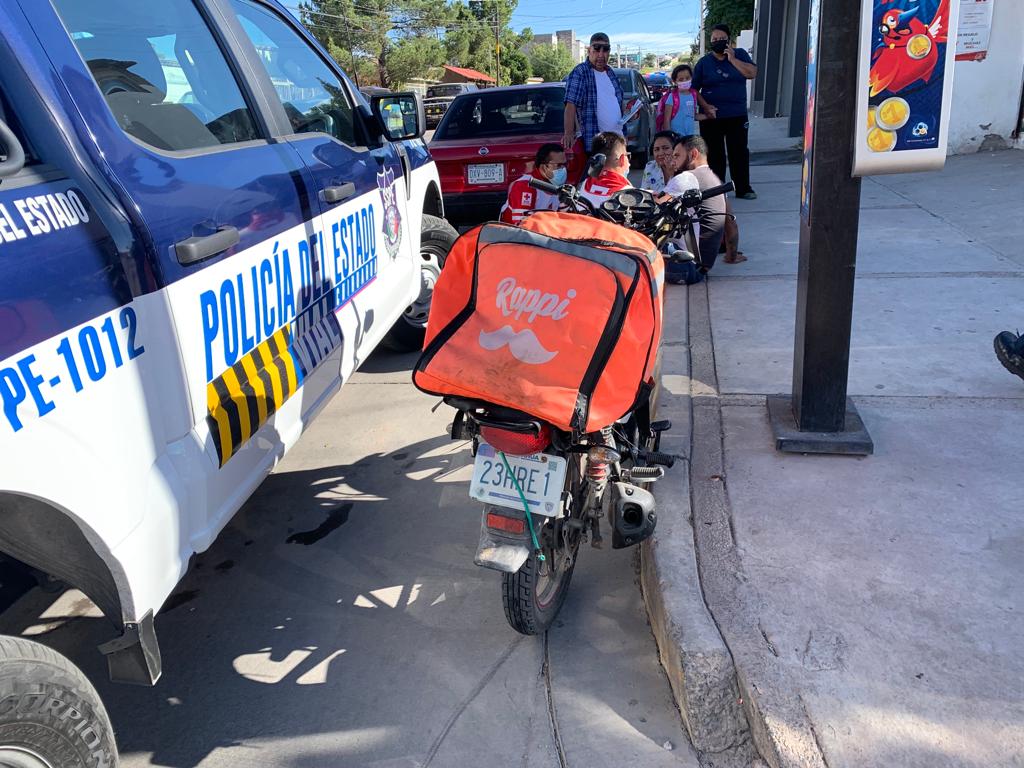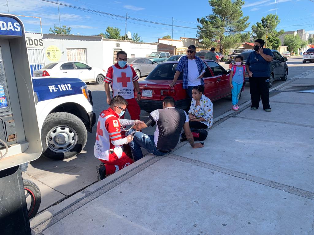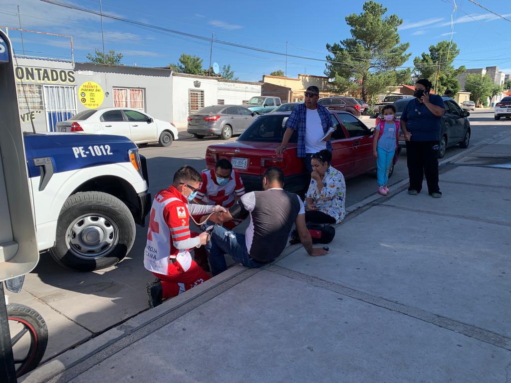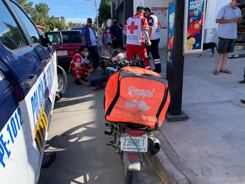 Un motociclista de la plataforma DiDi quedó lesionado luego de chocar de frente con un vehículo Tsuru en la colonia Valle de la Madrid.