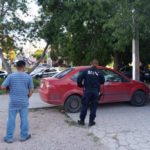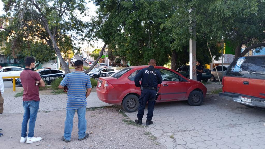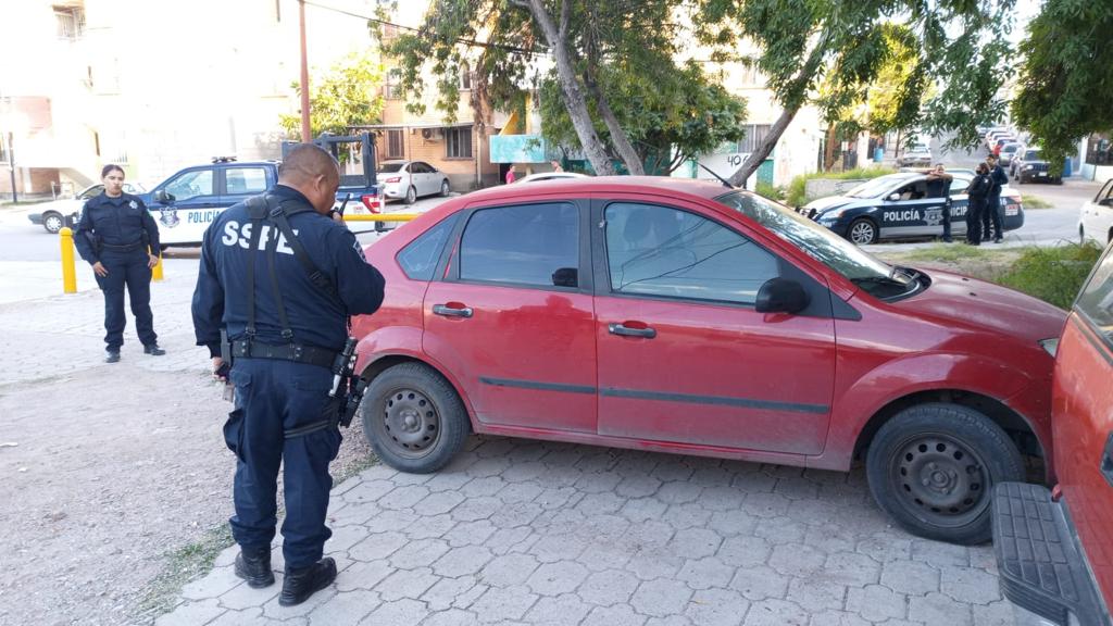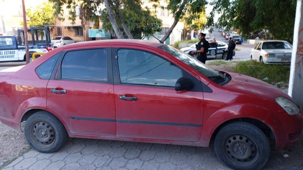 Al lugar acudieron elementos de la Policía Municipal y de la Policía Estatal corroborando que en efecto se trataba de un vehículo fiesta color rojo de 4 puertas que presenta dos impactos de arma de fuego.