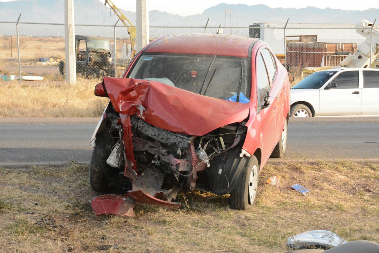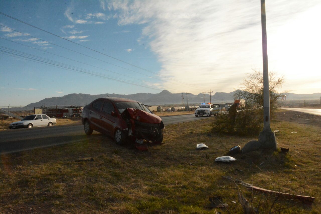El accidente ocurrió a la altura de la planta de Pemex que se ubica en la salida a Delicias, hasta donde se trasladó un agente de la Dirección de Vialidad para tomar nota.