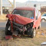Se trata de un vehículo Dodge Attitude con placas EMG-6932, el cual quedó por completo destrozado al ser impactado contra un poste.