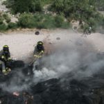 Al arribar elementos del Cuerpo de Bomberos, estos lograron sofocar el incendio de un centenar de llantas que se encontraban en un tiradero clandestino que estaba a espaldas del local, cercano a un arroyo.