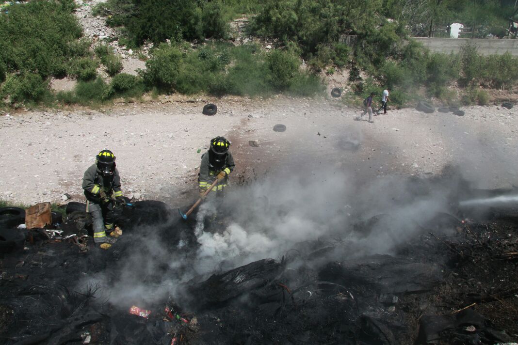 Al arribar elementos del Cuerpo de Bomberos, estos lograron sofocar el incendio de un centenar de llantas que se encontraban en un tiradero clandestino que estaba a espaldas del local, cercano a un arroyo.