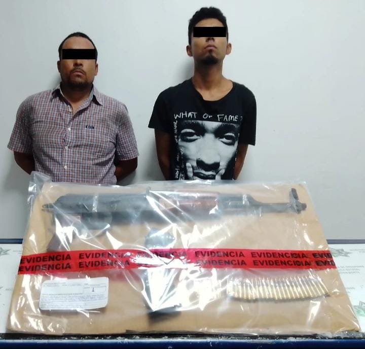 Elementos de la Secretaría de Seguridad Pública del Estado (SSPE) detuvieron en Ciudad Juárez a dos sujetos que huyeron al verlos y se impactaron en la barda de una escuela, asegurándoles un arma de fuego tipo fusil.