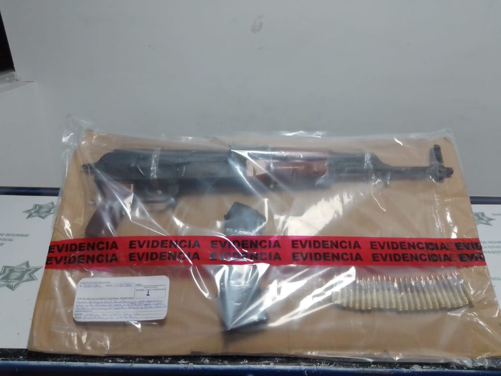 El conductor de la van pierde el control y se impacta en la barda de una escuela, de inmediato el personal de la SSPE les da alcance y los detiene, localizando al interior del vehículo siniestrado un arma de fuego tipo fusil calibre 5.56×45 con un cargador de plástico abastecido con 24 cartuchos útiles calibre .223 milímetros.