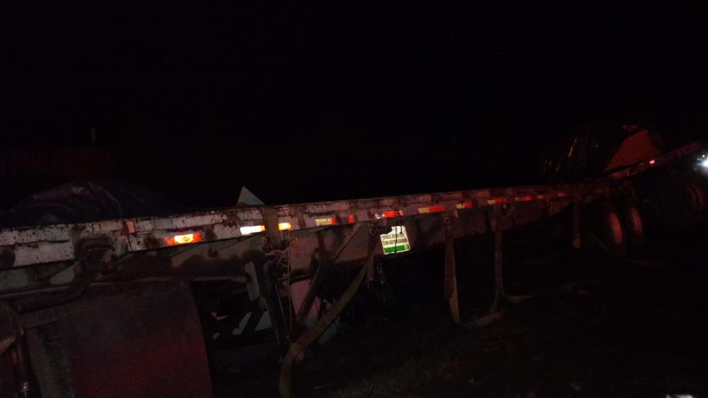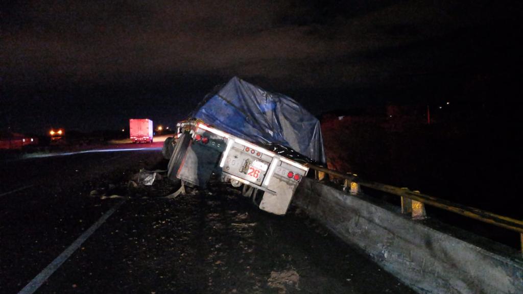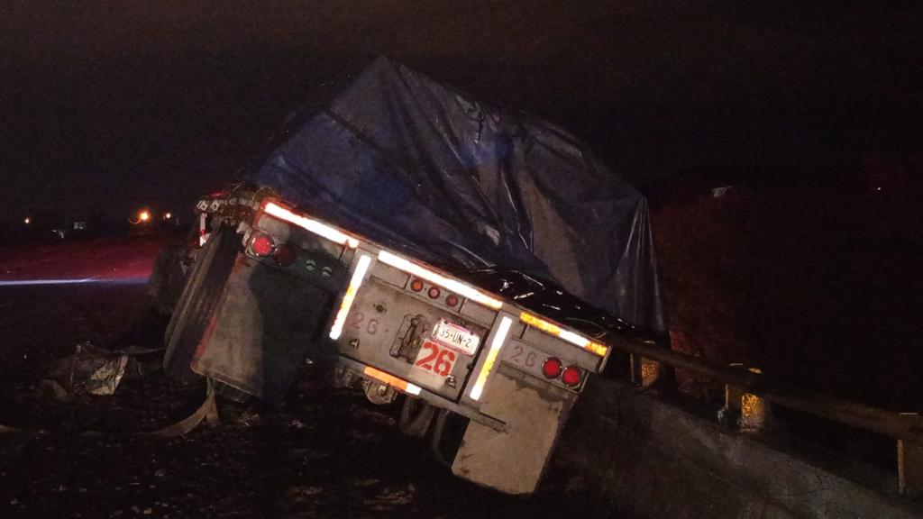 Un hombre de 33 años que manejaba un trailer de doble remolque que transportaba madera de Ciudad Parral al ir circulando por la carretera antes mencionada en el kilómetro 16, en el camino se atraviesan unas vacas las cuales fueron arrolladas y el vehículo termina por volcarse.