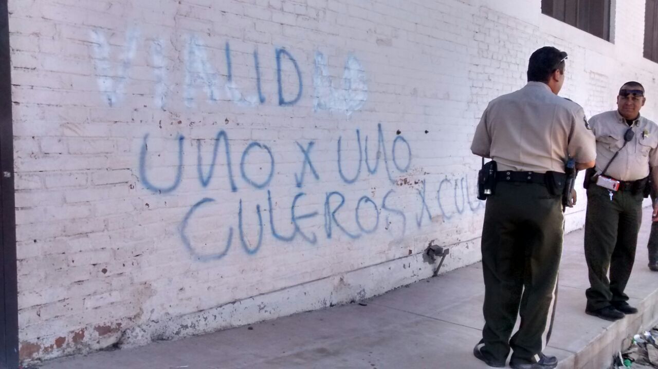 De acuerdo con el mensaje que tuvo que ser borrado de la pared del gimnasio, se amenazó a los agentes de Vialidad de muerte por corruptos.